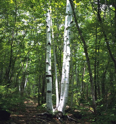 Pure white bark, shiny green leaves. Yellow fall colour. Very nice in clumps. Native to Japan.