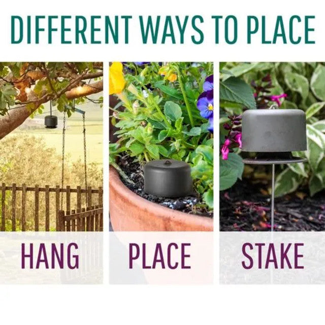 Deer Off®'s exterior has a discreet color that will blend right into your yard. Simply place the repelling stations in your flower pots, tie them onto branches or fencing, or stake them into the ground throughout your garden with the included thin metal stakes. For best results, place stations 4-6 feet apart throughout your protected area or as a perimeter treatment. It’s that easy. One 6 pack covers up to 192 sq ft.